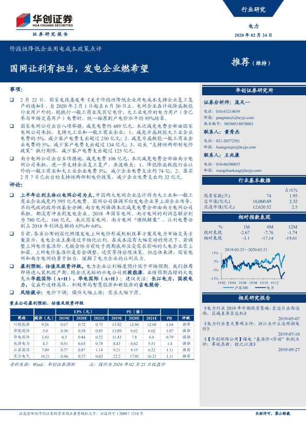 【华创证券】【20200224】阶段性降低企业用电成本政策点评-4页