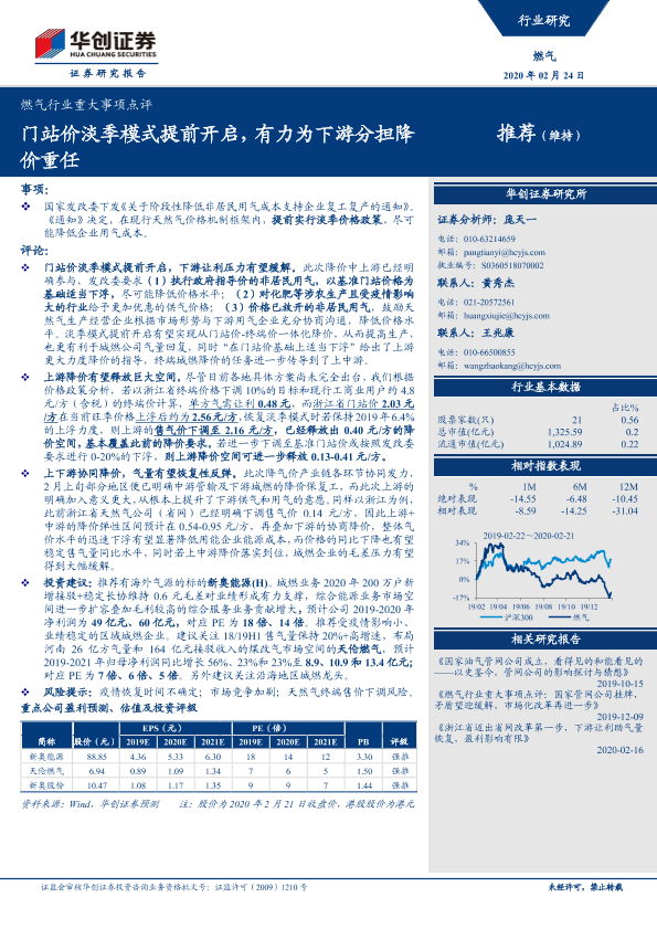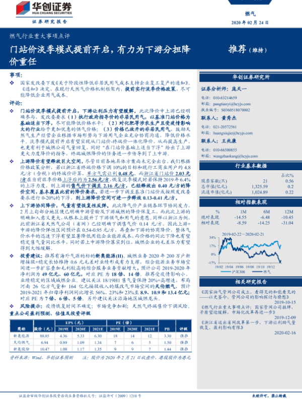 【华创证券】【20200224】燃气行业重大事项点评:门站价淡季模式提前开启,有力为下游分担降价重任-4页