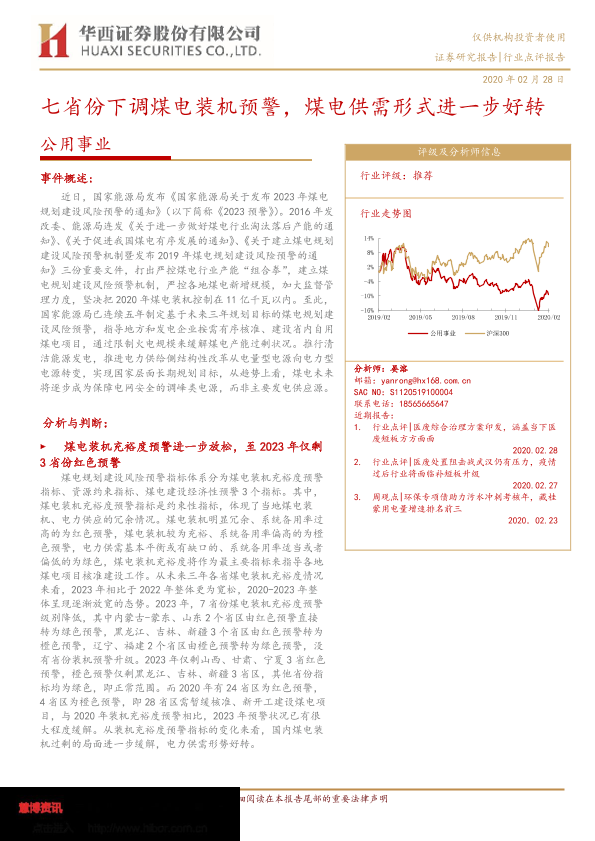 【华西证券】【20200228】七省份下调煤电装机预警,煤电供需形式进一步好转-7页