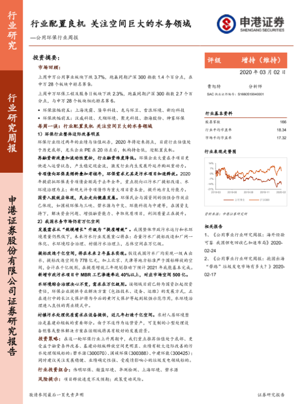 【申港证券】【20200302】公用环保行业周报:行业配置良机 关注空间巨大的水务领域-22页