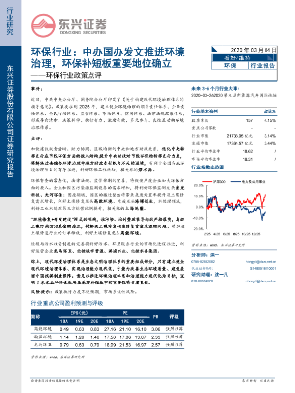 【东兴证券】【20200304】环保行业政策点评:中办国办发文推进环境治理,环保补短板重要地位确立-6页