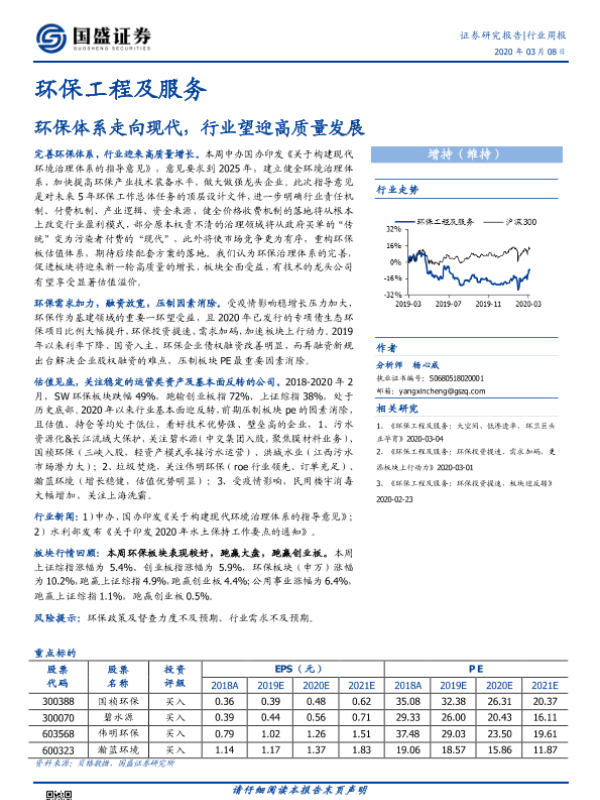 【国盛证券】【20200308】环保工程及服务行业周报:环保体系走向现代,行业望迎高质量发展-14页