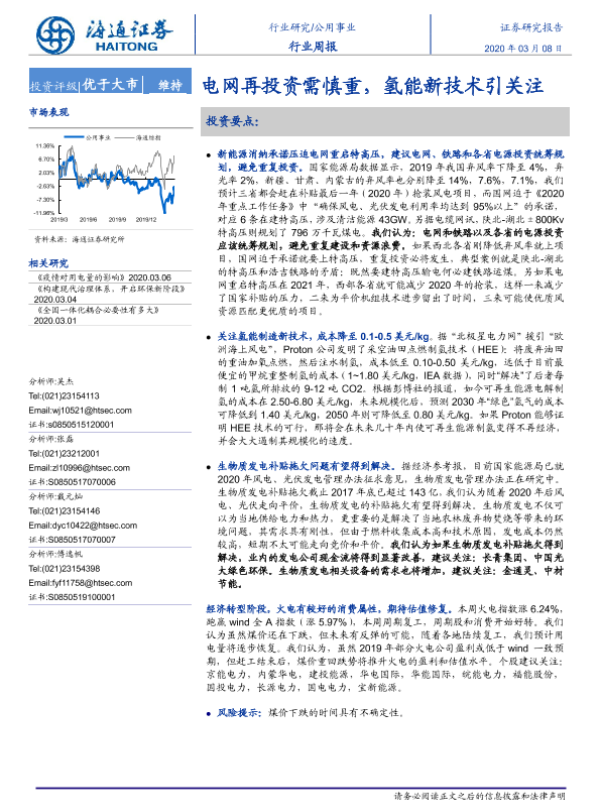 【海通证券】【20200308】公用事业行业周报:电网再投资需慎重,氢能新技术引关注-2页