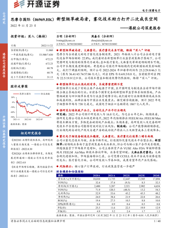 【开源证券】【20221123】港股公司深度报告:新型烟草破局者,雾化技术助力打开二次成长空间-40页