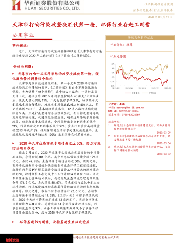 【华西证券】【20200312】天津市打响污染攻坚决胜仗第一枪,环保行业存赶工刚需-4页