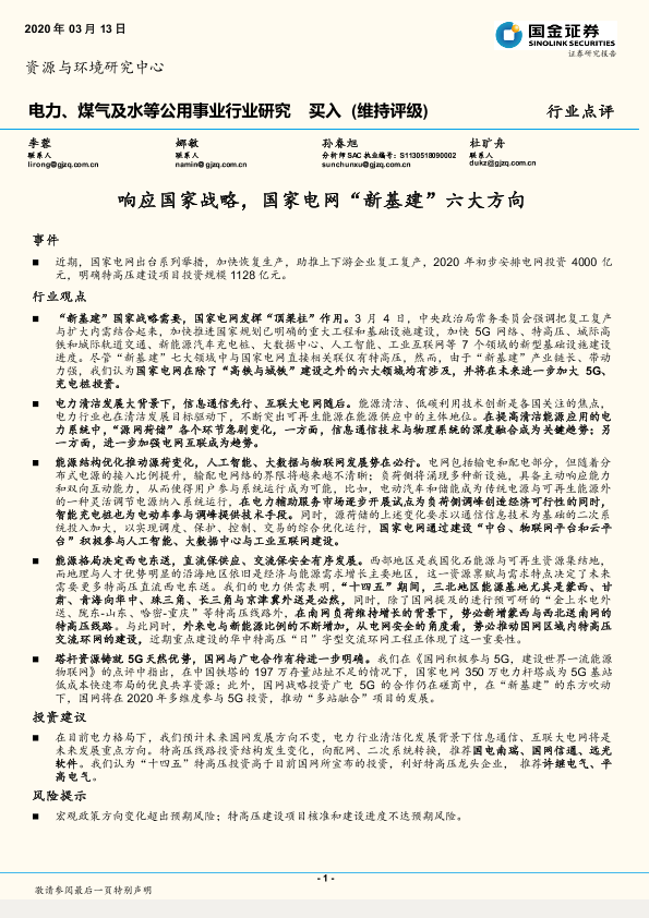 【国金证券】【20200313】电力、煤气及水等公用事业行业研究:响应国家战略,国家电网“新基建”六大方向-3页