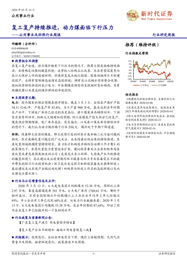 【新时代证券】【20200314】复工复产持续推进,动力煤面临下行压力-13页