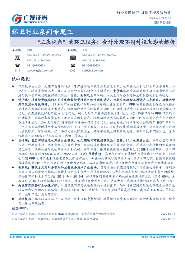 【广发证券】【20200315】环卫行业系列专题三:“三表视角”看环卫服务:会计处理不同对报表影响解析-15页