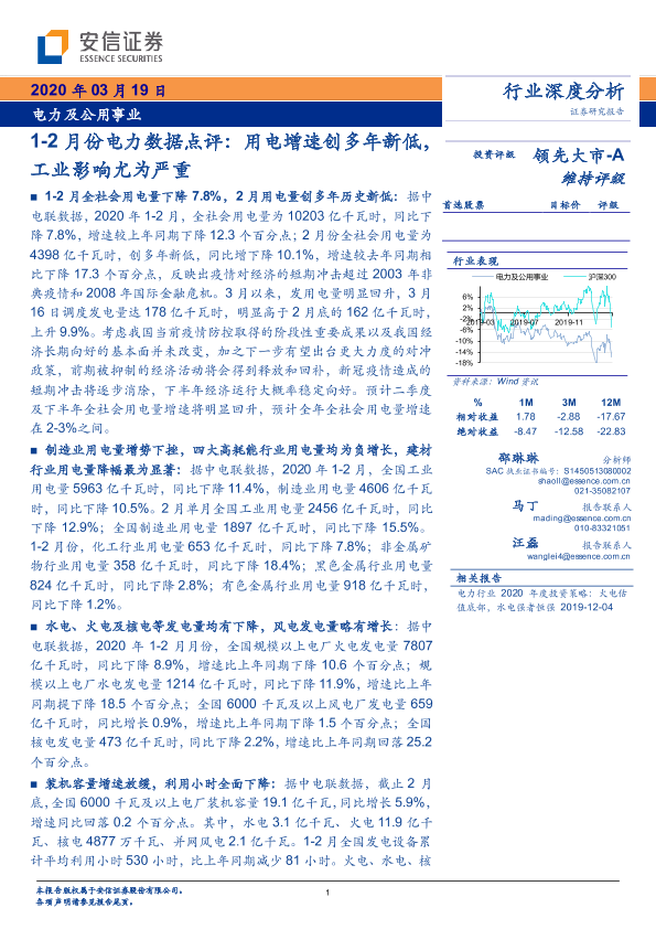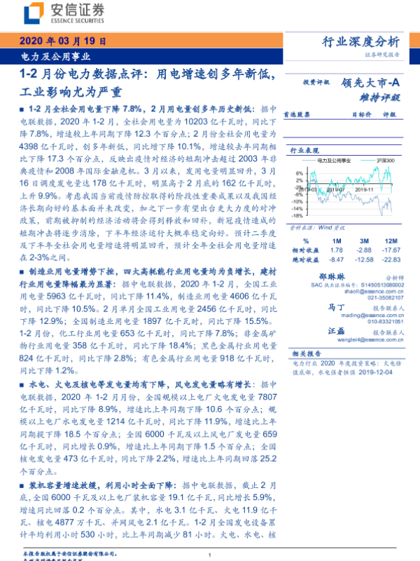 【安信证券】【20200319】1-2月份电力数据点评:用电增速创多年新低,工业影响尤为严重-20页