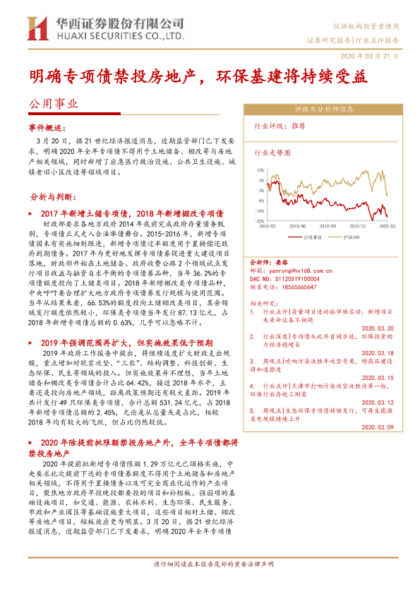 【华西证券】【20200321】明确专项债禁投房地产,环保基建将持续受益-5页
