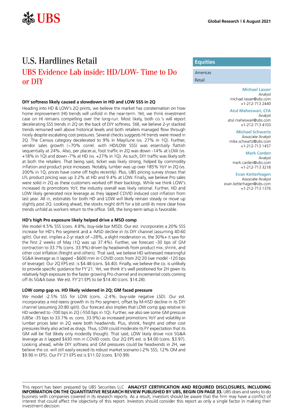 【瑞银】【20210806】瑞银-美股零售业-美国硬线零售:花时间做或是自己动手做-41页