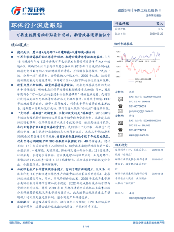 【广发证券】【20200322】环保行业深度跟踪:可再生能源首批补贴条件明确,融资改善逐步验证中-10页