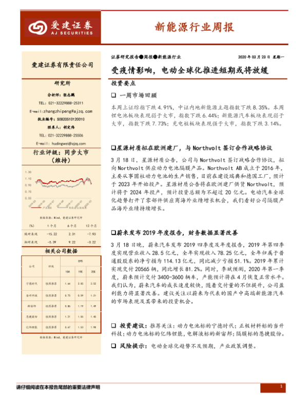 【爱建证券】【20200323】新能源行业周报:受疫情影响,电动全球化推进短期或将放缓-15页