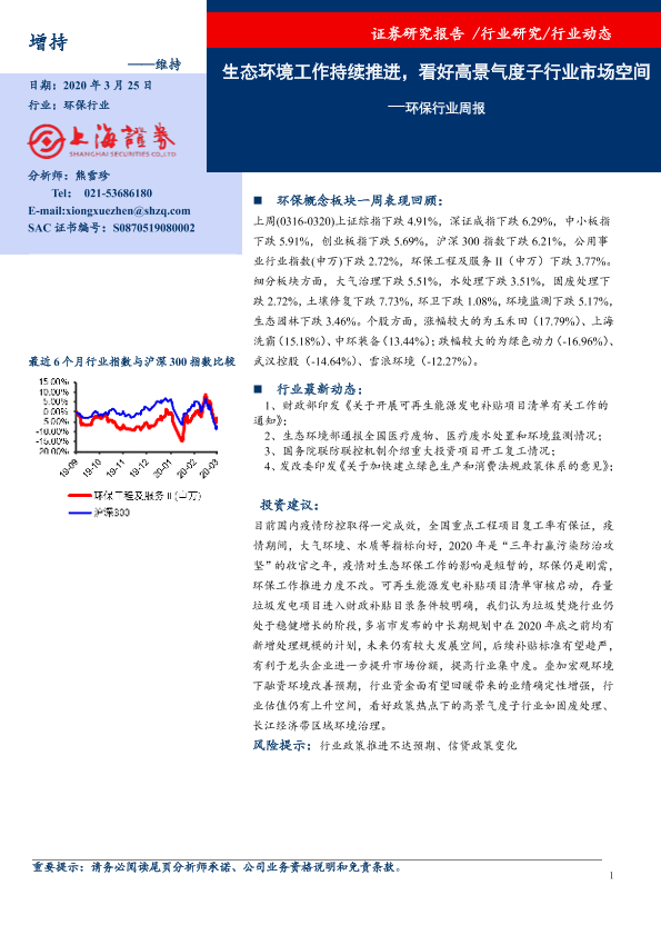 【上海证券】【20200325】环保行业周报:生态环境工作持续推进,看好高景气度子行业市场空间-7页