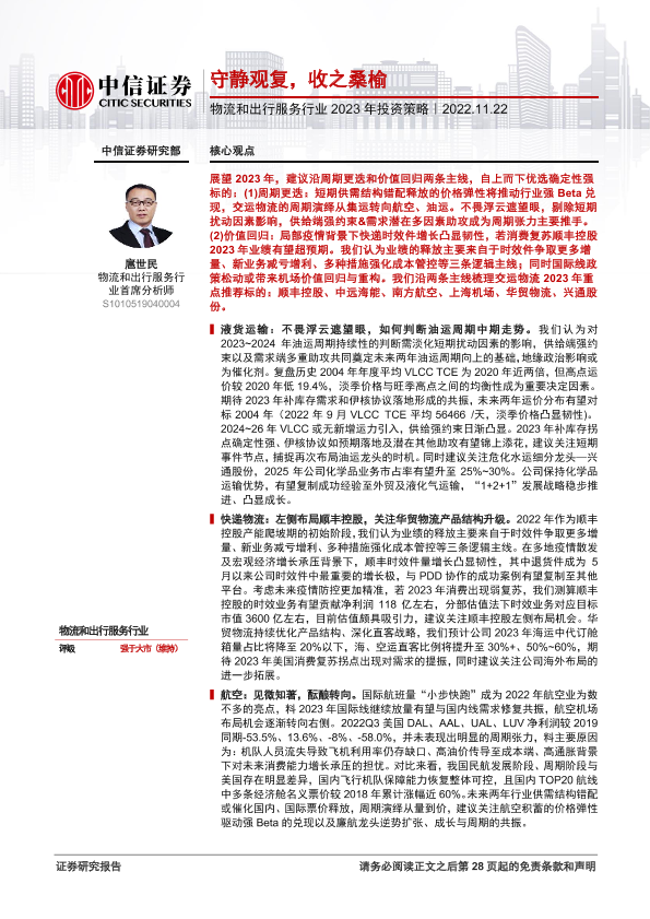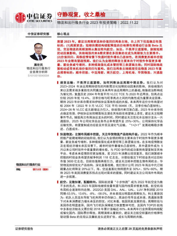 【中信证券】【20221122】物流和出行服务行业2023年投资策略:守静观复,收之桑榆-29页