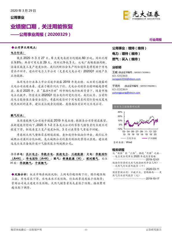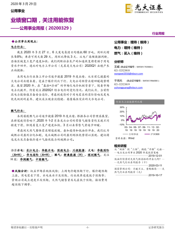 【光大证券】【20200329】公用事业周报:业绩窗口期,关注用能恢复-10页