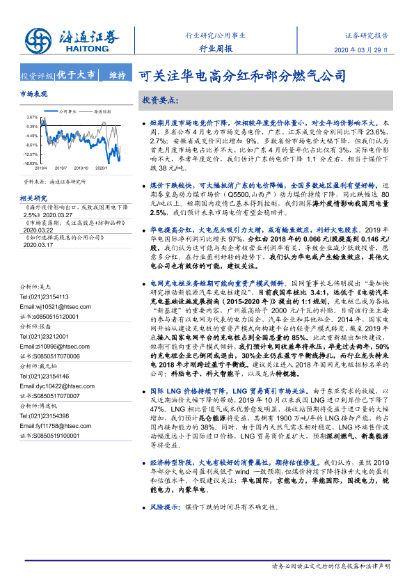 【海通证券】【20200329】公用事业行业周报:可关注华电高分红和部分燃气公司-2页