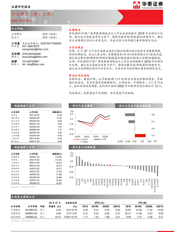 【华泰证券】【20200329】公用事业行业周报(第十三周)-10页