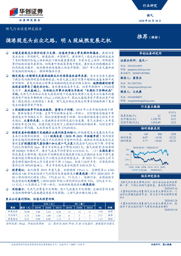 【华创证券】【20200330】循港股龙头出众之路,明A股城燃发展之机-24页
