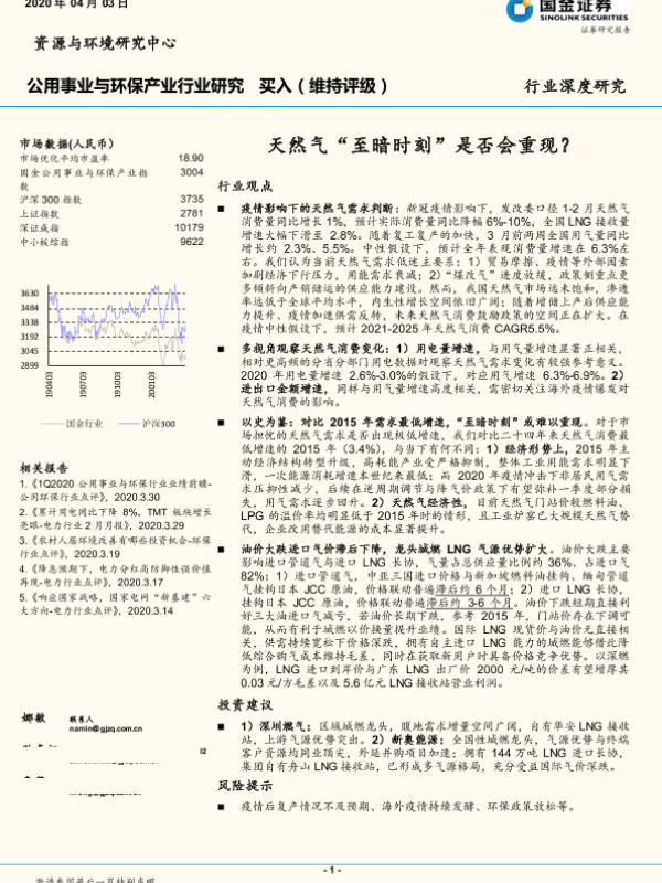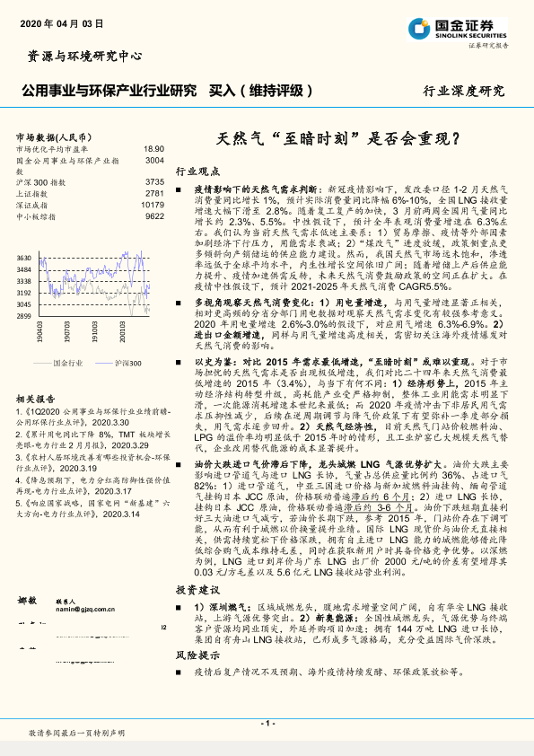 公用事业 天然气需求 环保产业 疫情影响 能源消费