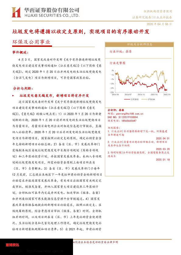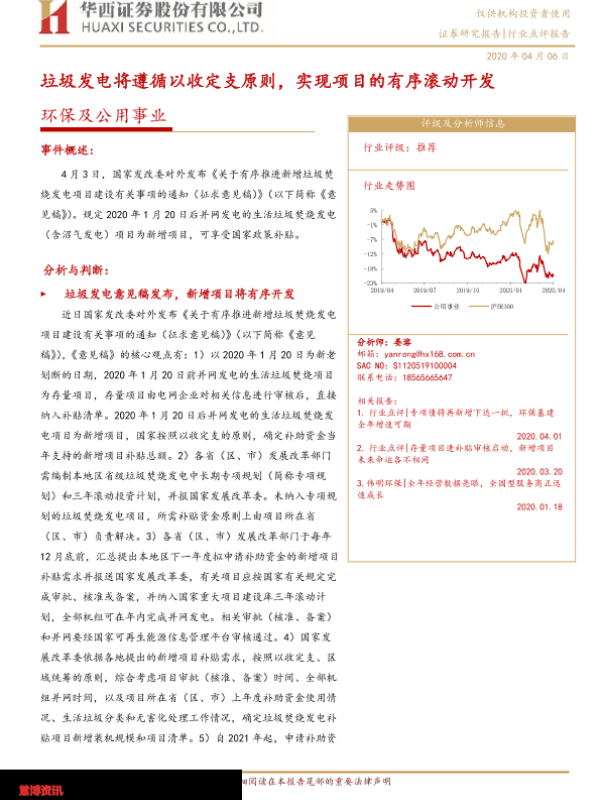 【华西证券】【20200406】垃圾发电将遵循以收定支原则,实现项目的有序滚动开发-6页
