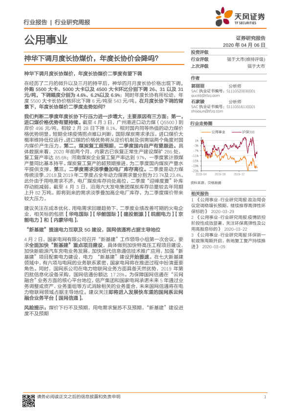 【天风证券】【20200406】神华下调月度长协煤价,年度长协价会降吗?-13页