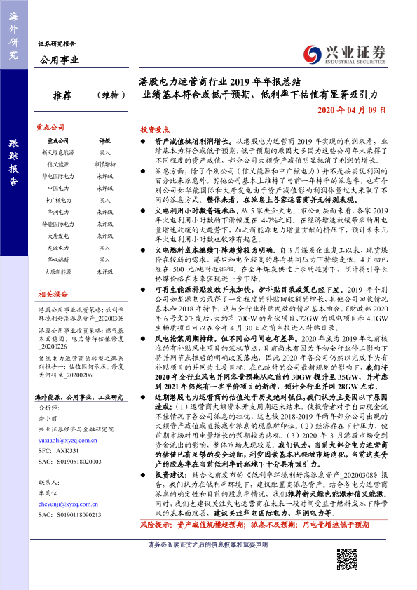 【兴业证券】【20200409】港股电力运营商行业2019年年报总结-15页