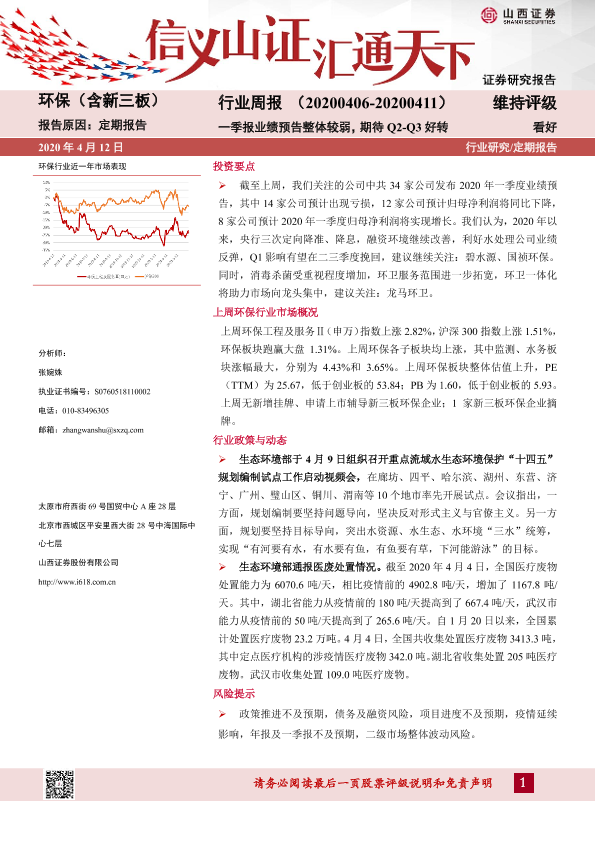 【山西证券】【20200412】环保(含新三板)行业周报:一季报业绩预告整体较弱,期待Q2-Q3好转-13页