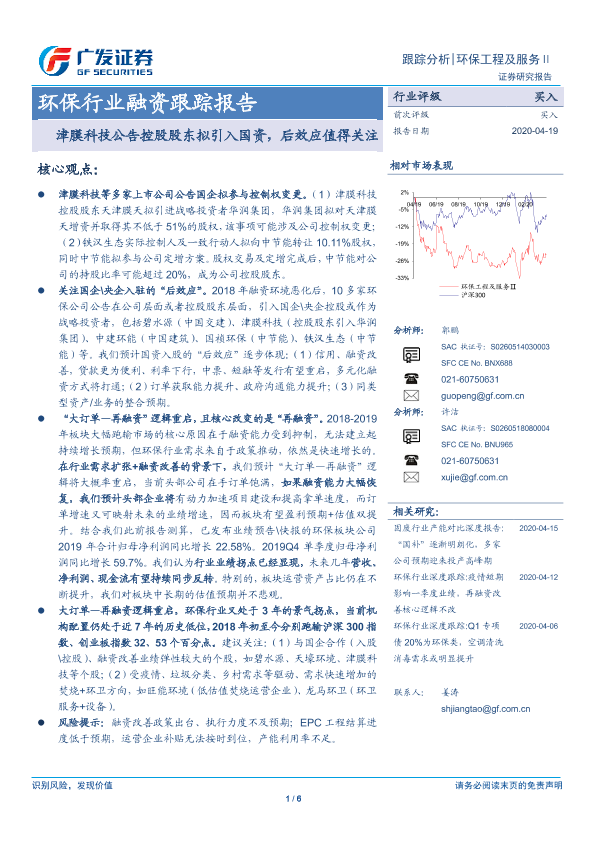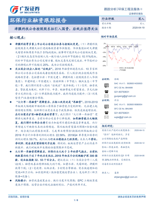 【广发证券】【20200419】环保行业融资跟踪报告:津膜科技公告控股股东拟引入国资,后效应值得关注-6页
