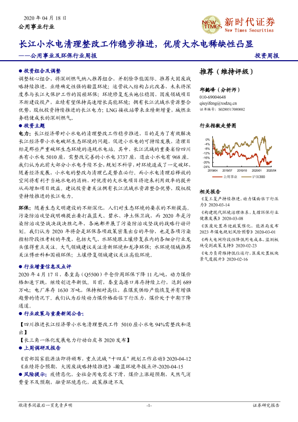 【新时代证券】【20200418】新时代证券-公用事业及环保行业周报:长江小水电清理整改工作稳步推进,优质大水电稀缺性凸显-18页