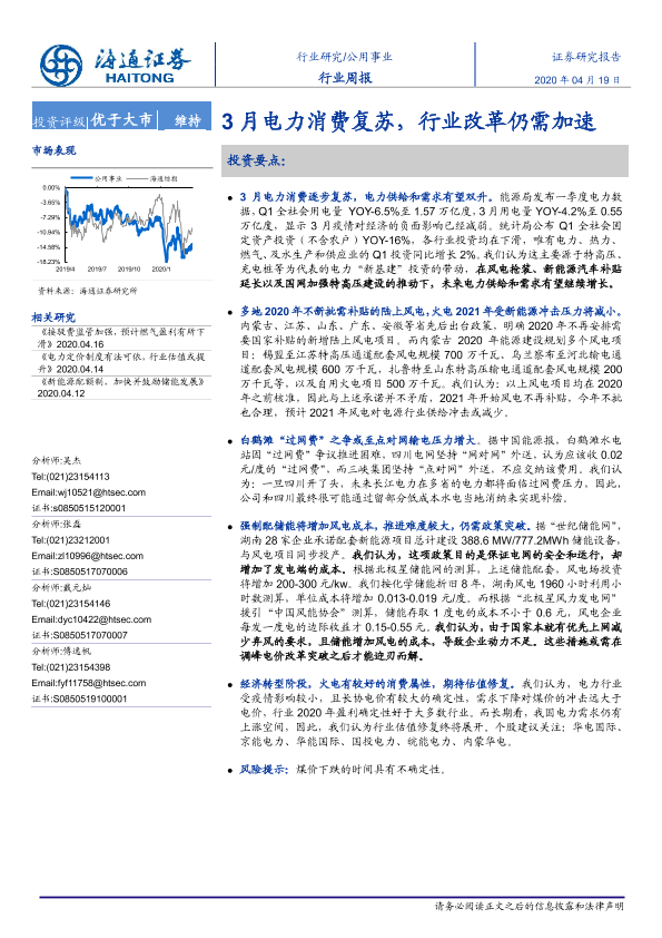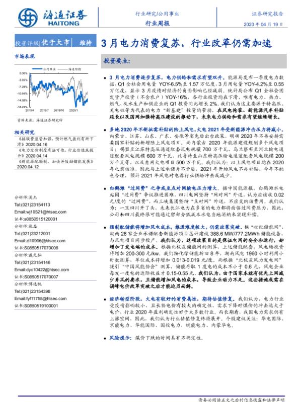 【海通证券】【20200419】3月电力消费复苏,行业改革仍需加速-2页