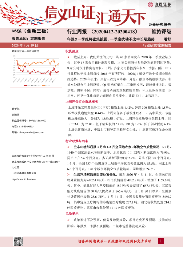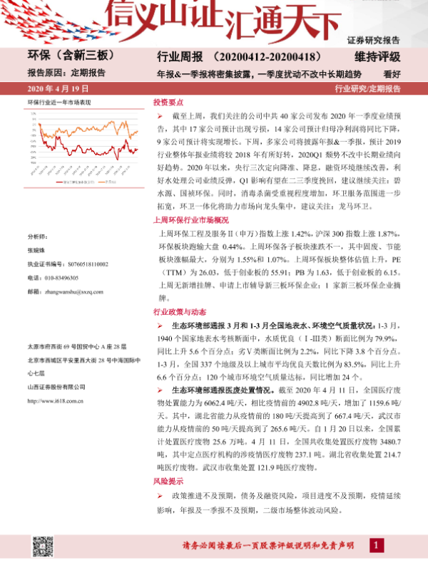 【山西证券】【20200419】环保(含新三板)行业周报:年报&一季报将密集披露,一季度扰动不改中长期趋势-14页
