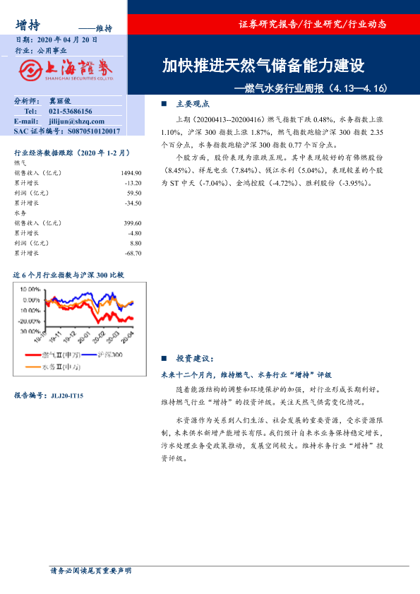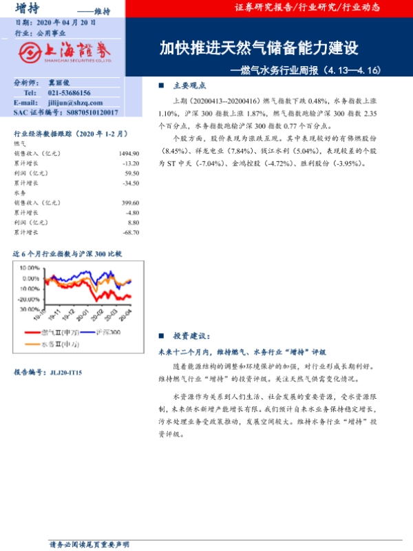 天然气储备 政策分析 燃气水务 股市表现 行业动态