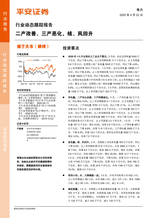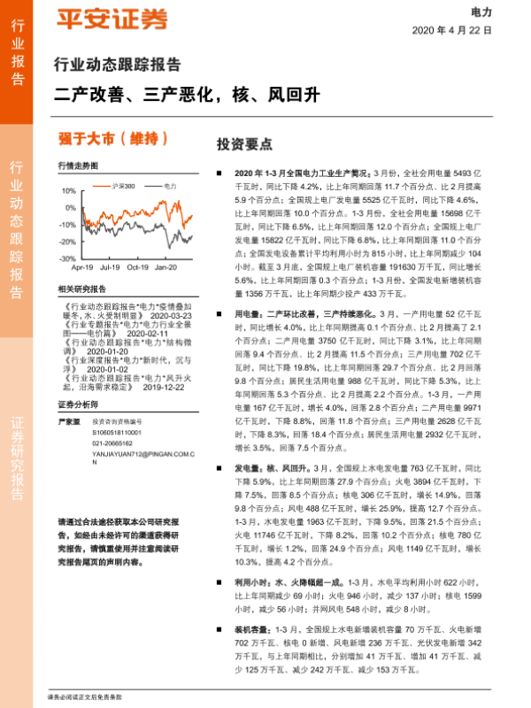 【平安证券】【20200422】电力行业动态跟踪报告:二产改善、三产恶化,核、风回升-16页