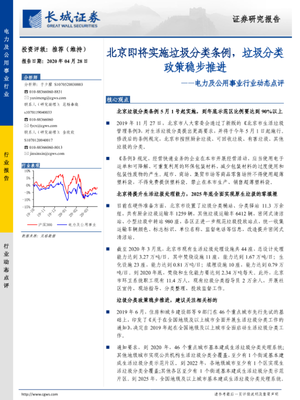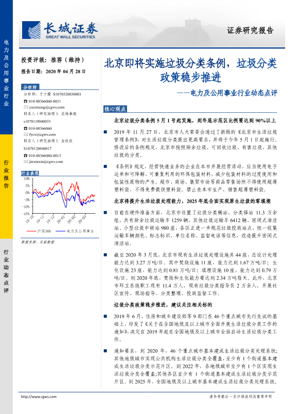 【长城证券】【20200428】北京即将实施垃圾分类条例,垃圾分类政策稳步推进-4页