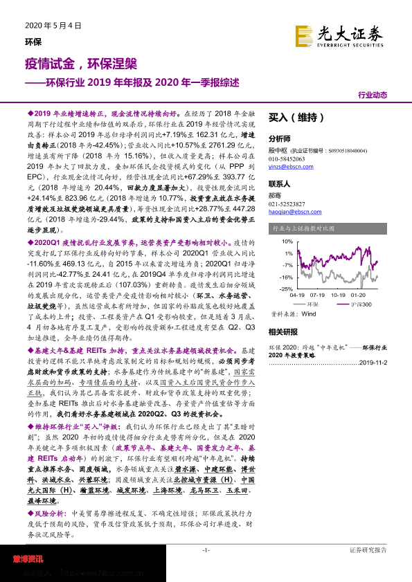【光大证券】【20200504】环保行业2019年年报及2020年一季报综述:疫情试金,环保涅槃-18页
