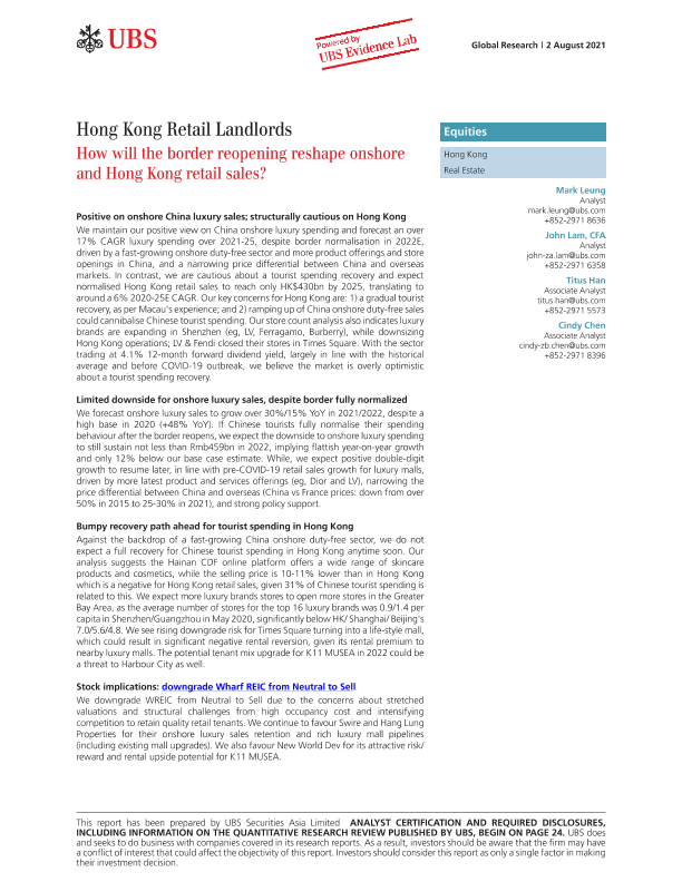 【瑞银】【20210802】瑞银-香港房地产行业-边境重新开放将如何重塑在岸和香港零售业-31页