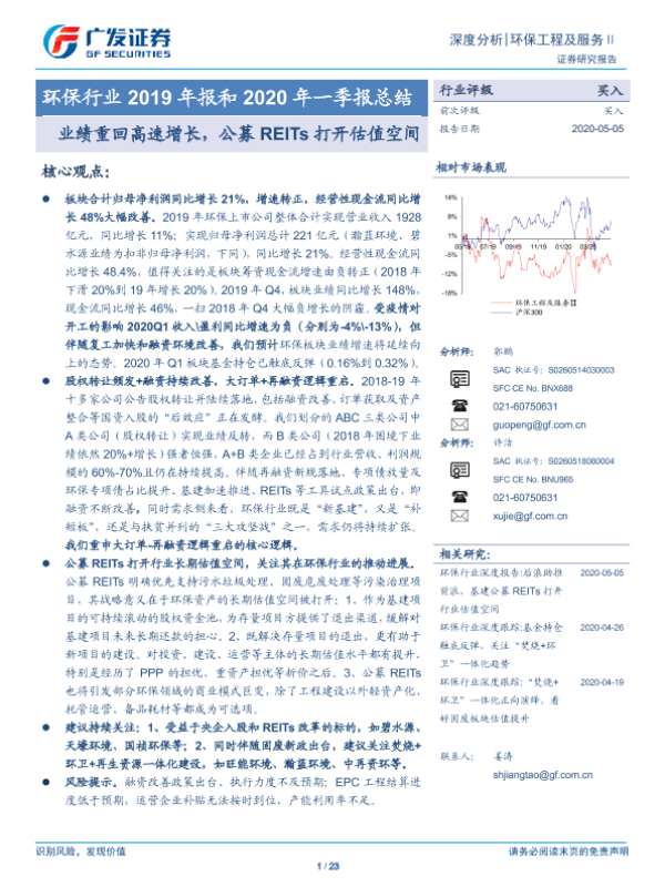 【广发证券】【20200505】环保行业2019年报和2020年一季报总结-23页