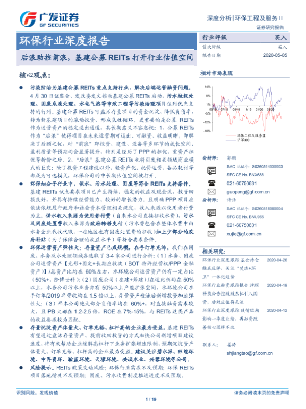 【广发证券】【20200505】环保行业深度报告:后浪助推前浪,基建公募REITs打开行业估值空间-19页