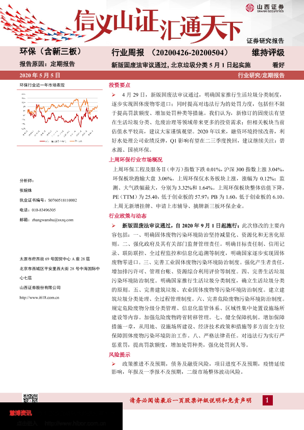 【山西证券】【20200505】新版固废法审议通过,北京垃圾分类5月1日起实施-16页