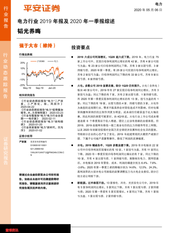【平安证券】【20200506】电力行业2019年报及2020年一季报综述:韬光养晦-19页