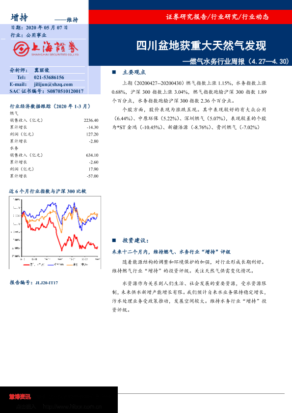 【上海证券】【20200507】燃气水务行业周报:四川盆地获重大天然气发现-9页