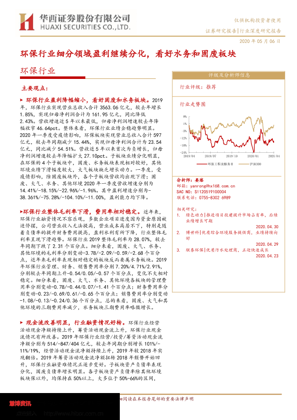 【华西证券】【20200506】环保行业细分领域盈利继续分化,看好水务和固废板块-21页