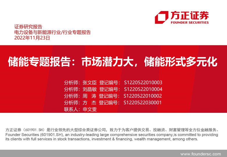 【方正证券】【20221124】电力设备与新能源行业储能专题报告:市场潜力大,储能形式多元化-109页