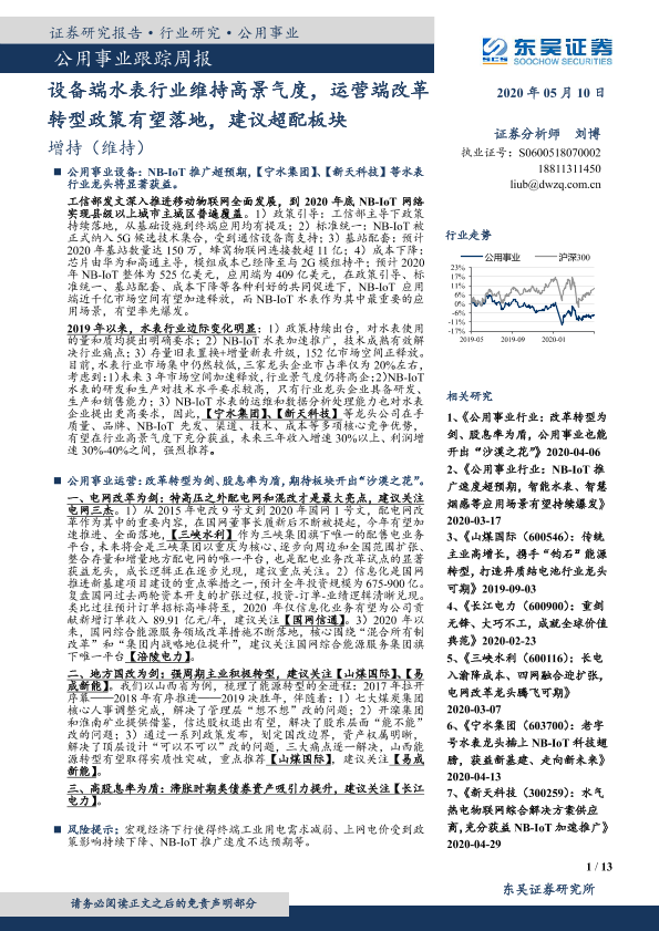 【东吴证券】【20200510】公用事业跟踪周报:设备端水表行业维持高景气度,运营端改革转型政策有望落地,建议超配板块-13页