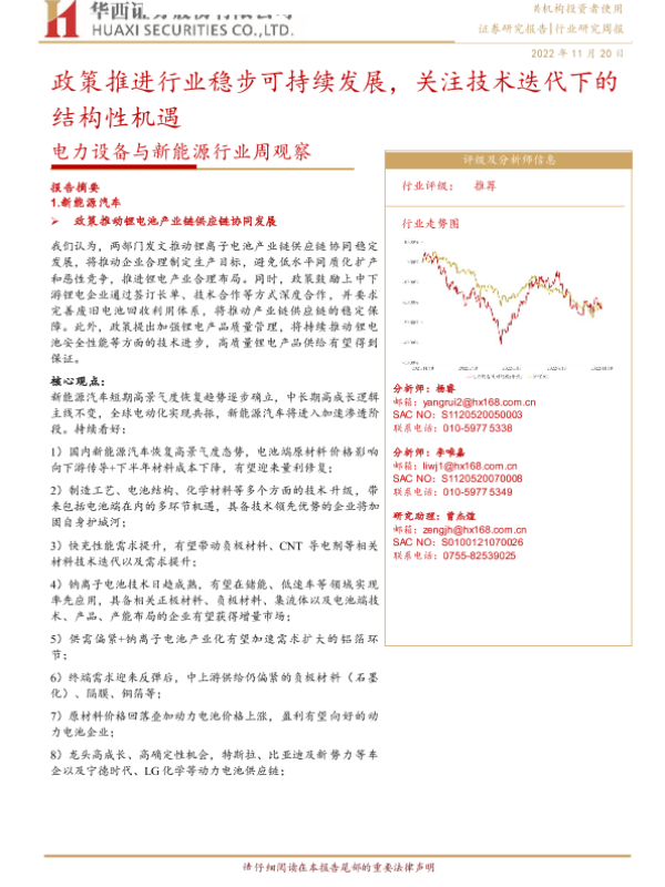 【华西证券】【20221120】电力设备与新能源行业周观察:政策推进行业稳步可持续发展,关注技术迭代下的结构性机遇-21页