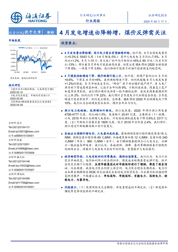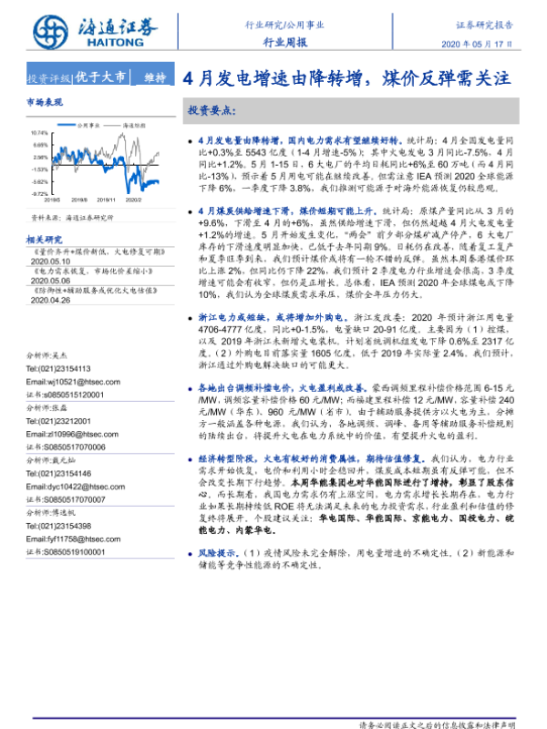 【海通证券】【20200517】4月发电增速由降转增,煤价反弹需关注-2页