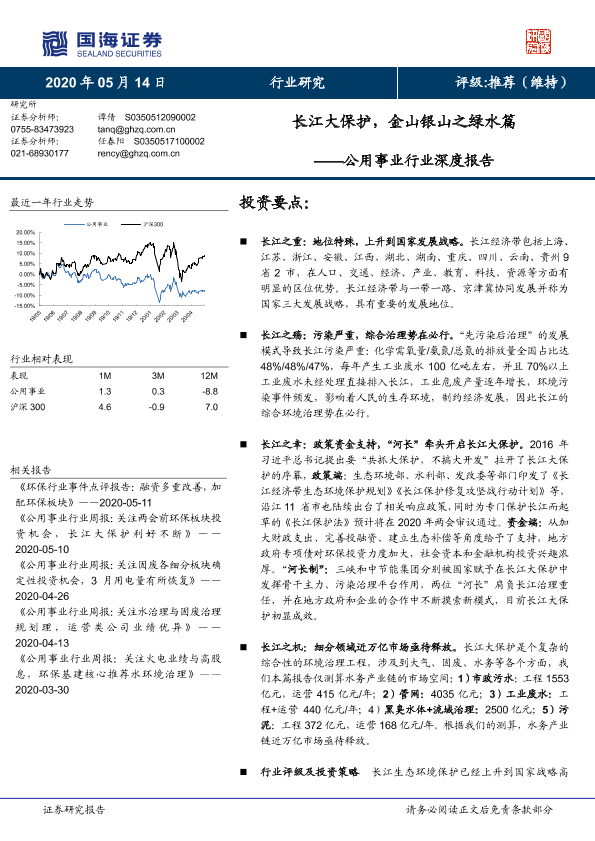 【国海证券】【20200514】公用事业行业深度报告:长江大保护,金山银山之绿水篇-35页