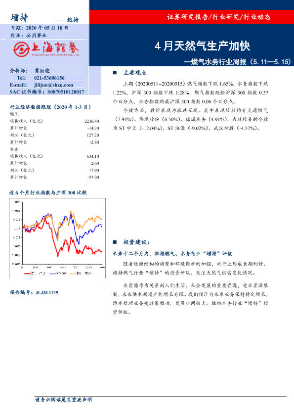 【上海证券】【20200518】燃气水务行业周报:4月天然气生产加快-7页