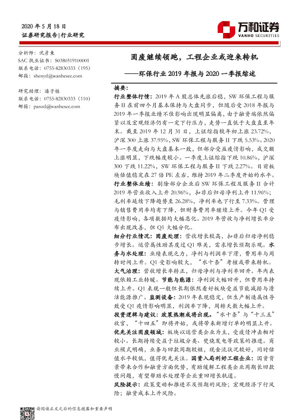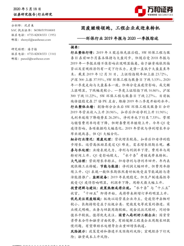 【万和证券】【20200518】环保行业2019年报与2020一季报综述-19页
